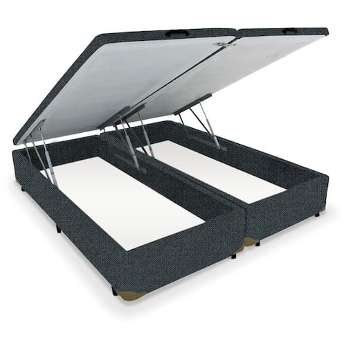 Cama Box CASAL Bipartido Baú Canvas Grafite - 138x188 - Branco