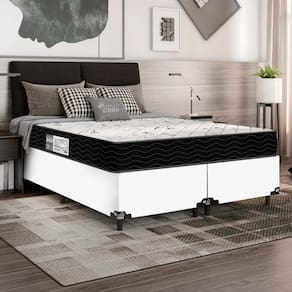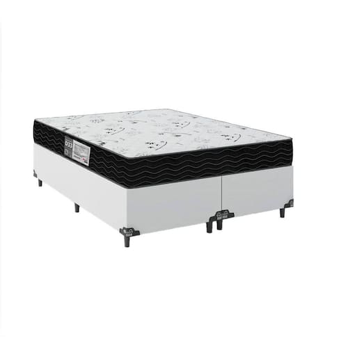 Cama Box Casal Bipartido + Colchão Espuma D33 One Face - Couro Branco - e-Shop Casa
