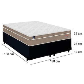 - Estrutura externa: Tecido em Bambú Fresh em Malha de Poliéster com Viscose de alta resistência e maciez, lateral em Camurça, bordado em Matelassê, manta de espuma D26 Pró Aditivada..