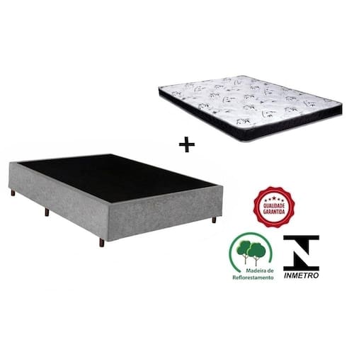 Cama Box Casal Cinza + Colchão Espuma D20 138x188x14 - Preto