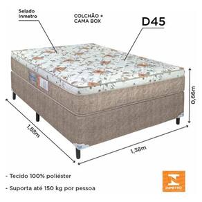 Altura: Colchão 25cm / Box 28 cm / Pés 12cm