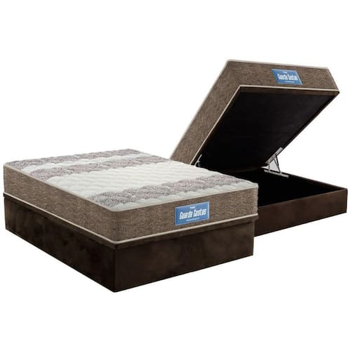 Cama Box Baú Casal: Colchão Anatômico Probel D33/ Guarda Costas Próintense Double Face + Base CRC Suede Brown(138x188)