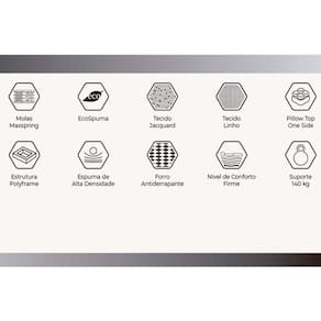 Dimensões(Cm): Comprimento(Profundidade): 188cm x Largura: 138cm x Altura: 27cm Tipo de Colchão - Molas Vantagens Extras de Colchão - Ecologicamente Correto - c/ Sistema Polyframe Tecido com Tratamento do Colchão - AntiÁcaro e AntiFungo Bordado do Revestimento do Colchão - Matelassê Forração Revestimento do Colchão - Jacquard - Linho Forração do Revestimento Inferior do Colchão - Antiderrapante Tecido de Revestimento da Faixa Lateral do Colchão - Jacquard - Linho Modo de Utilização do Colchão - One Side Camadas Interna do Estofamento de Espuma do Colchão - AG Tipo de Estrutura Ortopédico do Colchão - AG Tipo de Espuma do Colchão - Espuma de Poliuretano de Alta Qualidade Tipo de Mola do Colchão - Maxspring - Molas Maxspring Nível de Firmeza do Colchão - Firme Peso Máximo Suportado do Colchão - 140 kg Certificação de Qualidade do Colchão - Qualidade Aprovada - INMETRO - ISO 9001 Nossa Avaliação do Colchão - Qualidade Muito Boa Tempo de Garantia do Colchão - 3 meses - 12 meses