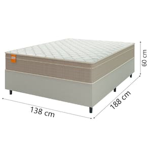 MEDIDAS DO COLCHÃO: A = 22 cm L = 138 cm P = 188 cm MEDIDAS DO BOX: A = 38 cm / 26 cm (sem pés) L = 138 cm P = 188 cm ALTURA DOS PÉS: 12 cm PESO: 57,8 Kg PESO SUPORTADO: 200 Kg por pessoa MODELO: Cama Box Casal Colchão Molas Qatar 138x188x60cm Suporta Até 200 Kg Por Pessoa MARCA COLCHÃO: CBP Inducol MARCA BOX: Prince COR: Bege/Branco REVESTIMENTO SUPERIOR: Capa bordada branca 100% poliéster REVESTIMENTO LATERAL: Jacquard bege REVESTIMENTO INTERIOR: Molas de qualidade MaxForce Pro aliada com Espuma D65, permitindo que o colchão suporte até 200 kg por pessoa MOLEJO: Molas POSSUI EPS: Não ESPUMA: D26 e D65 TECIDO DO BOX: Suede PÉS: 6 MATERIAL DOS PÉS: Plástico DIFERENCIAL: Os colchões são produzidos com espuma de alta qualidade, com revestimento com o tecido poliéster, proporcionando um excelente sono ITENS INCLUSOS: 1 Colchão de 1,38m; 1 Box de 1,38m GARANTIA DO COLCHÃO: 12 Meses GARANTIA DO BOX: 3 Meses