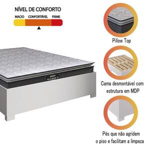 O quarto dos sonhos pede uma base box bonita e resistente! Esse conjunto é a combinação perfeita de beleza e conforto. O Colchão Maximus conta com molas ensacadas individualmente que trabalham em conjunto para garantir conforto e durabilidade, pois desta forma independente, o movimento de uma pessoa não interfere no conforto da outra. Confeccionado em malha matelassê e fibra siliconada que permite melhor ventilação, proporcionando ainda mais conforto, lateral em tecido suede de toque macio e uma camada de pillow top, proporcionando maciez. Conta com base box de fácil montagem, desmontagem e limpeza, trazendo praticidade para o seu dia a dia. Invista na qualidade do seu sono e experimente garantia total de descanso e qualidade de vida!