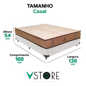 A tecnologia que a sua casa merece está na V-Store! O Conjunto Colchão Madrid + Base Box da V-Store é a combinação perfeita de conforto e praticidade. O colchão, com molas ensacadas e sistema EPS, proporciona noites de sono tranquilas, oferecendo suporte ideal e proteção contra ácaros e alergias. A base box, feita com madeira reflorestada e revestida com tecido sintético, garante resistência, durabilidade e facilidade de manutenção. Com capacidade para até 150 kg por pessoa, esse conjunto é ideal para quem busca qualidade, conforto e estilo no seu dormitório.Característica Do Colchão: Modelo: MadridMarca: V-StoreTamanho: CasalDimensões: 138x28x188 (Largura x Altura x Comprimento)Conforto: MédioSistema: Molas EnsacadasPillow: Não se aplicaPeso Máximo recomendado: 150 kg (Por pessoa)Proteções: Antiácaro, antialérgico, antifungo, antimofoGarantia: 12 Meses (Espuma) / 10 anos ( Conjunto de Molas Ensacadas)Característica Da Base: Marca: V-StoreModelo: BravusTamanho: CasalDimensões: 138x44x188 (Largura x Altura x Comprimento)Estrutura: MadeiraPeso máximo recomendado: 150 kg (Por Pessoa)Altura do Box: 26 cmAltura dos Pés: 6 cmAltura total: 44 cmGarantia: 12 Meses (Estrutura) / 3 meses (Tecido)Selo Ecologicamente CorretoAtenção:- Antes de finalizar sua compra, recomendamos que verifique se as dimensões do produto são adequadas para serem transportadas pelos elevadores, portas, escadas e corredores de sua residência. Ressaltamos que não nos responsabilizamos pelo transporte do produto por meios específicos, como escadas, guinchos ou içamentos.- É possível que hajam leves variações de cor de acordo com o dispositivo que está sendo utilizado como smartphones, computadores, monitores e outros.