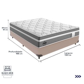 Colchão: Modelo: Berlim; Marca: Probel; Tamanho: Casal; Dimensões: 138x188x26cm; (largura x comprimento x altura) Conforto: Intermediário; Proteções: Antiácaro, antialérgico, antifungo, antimofo; Possui: Molas (Ensacadas); Pillow Top: Euro Pillow; Camadas de Espuma: D28; Tecido: Acabamento em Malha e Tecido Jaquard; Peso máximo recomendado: 110kg; Garantia: 03 meses;
