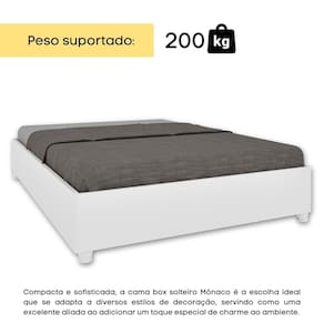 Estrutura Robusta: Produzida em MDP, com estrado de madeira reflorestada e ripas multilaminadas, garantindo firmeza superior e suportando até 200 kg.