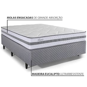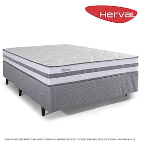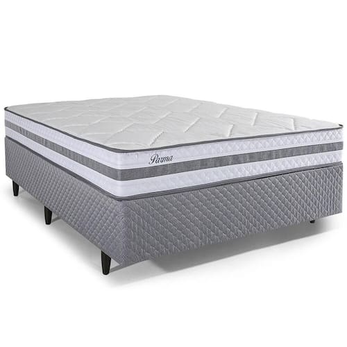 Madeira Eucalipto, Chapas Multilaminadas, Espuma D20, Aço Especial, PoliésterCama Box Casal Herval Parma, 61x138x188 cm, Molas Ensacadas, Cinza