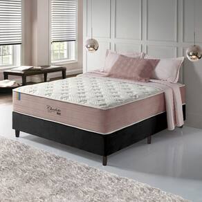 O box é produzido com madeira de Eucalipto para garantir uma estrutura firme e resistente. O acabamento com Suede te dão um toque sofisticado e moderno ao sommier, facilitando também a limpeza do mesmo. Para proporcionar ainda mais estabilidade, os pés são em plástico.