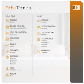 * TIPO DO TECIDO DO TAMPO E LATERAL Tampo em Malha - de modo geral, podemos dizer que a malha é uma estrutura criada a partir de uma tecelagem específica, com o ato de entrelaçar os fios em um sentido constante. Isso confere ao mesmo tempo flexibilidade e força à peça, tornando-a muito resistente e maleável. Lateral em Poliéster - O Poliéster possui vantagens significativas, tais como a grande facilidade para dissipar a umidade e garantir que o Colchão seja mais confortável para o sono.