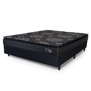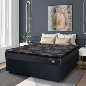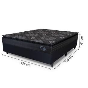 MODELO: Cama Box Casal Queen Colchão Com Molas Ensacadas City Pillow Top 158x198x61cm Preto Hellen