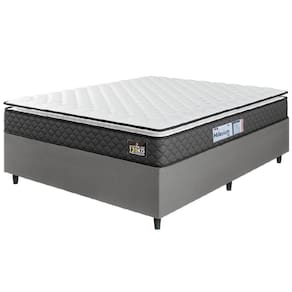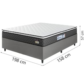 Cama Box Casal Queen Colchão Espuma D33 Pillow Top Millenium 158x198x57cm Suede Cinza/branco Hellen