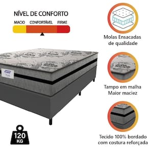 REVESTIMENTO INTERIOR: Molas Ensacadas aliada com espuma D60, permitindo que o colchão suporte até 120 kg por pessoa