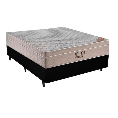 Cama Box Casal Sintético + Colchão Casal Ortobom Airtech Molas Ensacadas 65x138x188 Preto