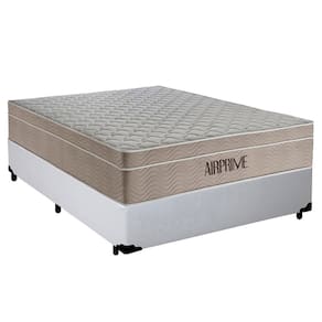 Cama Box Casal Sintético Cremil + Colchão Molas Ensacadas AirPrime 138x188x65cm - Branco