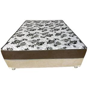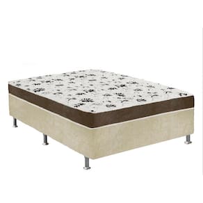 Cama Box Casal Suede Bege + Colchão Casal Suede Marrom Orto Molas Bonnel 138x188x55