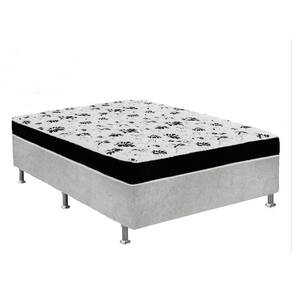 Cama Box Casal Suede Cinza + Colchão Casal Suede Preto Orto Molas Ensacada 138x188x55