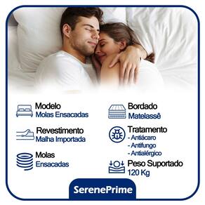 O Colchão Casal SerenePrime Molas Ensacadas oferece uma experiência de sono excepcionalmente confortável e suporte personalizado para noites de descanso revitalizante. Contando com molas ensacadas e espuma, ele é a opção perfeita para acomodar bem seu corpo e deixar você bem aconchegado, levando maior bem-estar às suas horas de descanso.