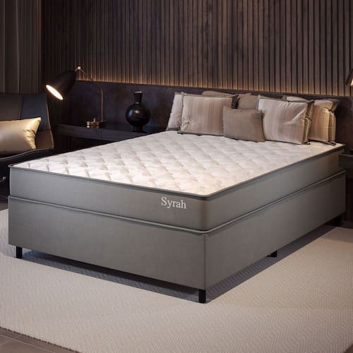 - Composição: Molas Ensacadas Individualmente, tampo em Tecido Malha 160g/m² bordado com fibra, espuma de conforto D28, lateral em veludo