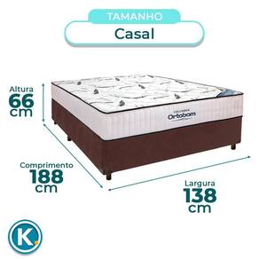Modelo: Elite Marca: Nature Tamanho: Queen Tecido: Veludo Largura: 158cm Comprimento: 198cm Altura: 35cm Altura dos Pés: 7cm Material dos Pés: Madeira Suporte de Peso: 150Kg Peso: 40Kg Garantia: 3 Meses