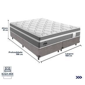 O conforto que sua casa precisa e a qualidade que você merece está na Kazamix!Apresentamos o Colchão Probel Berlim, a escolha ideal para quem busca conforto e qualidade. Com Molas Ensacadas e camada Euro Pillow, ele proporciona suporte individualizado e maciez extra para um sono tranquilo. A espuma D28 oferece durabilidade e conforto, enquanto o tecido em malha e jacquard garante um toque sofisticado e respirabilidade.Além disso, conta com proteções antiácaro e antialérgico, criando um ambiente saudável para o seu descanso.Invista no seu conforto com o Colchão Probel Berlim!Modelo: BerlimMarca: ProbelTamanho: QueenDimensões: 158x198X26 (Largura x Comprimento x Altura)Conforto: IntermediárioSistema: Molas EnsacadasPillow: Euro PillowPeso Máximo recomendado: 110 kg (Por pessoa)Proteções: Antiácaro, antialérgico, antifungo, antimofoGarantia: 1 ano pelo FabricanteO conforto que sua casa precisa e a qualidade que você merece está na Kazamix!Eleve o conforto e a sofisticação do seu quarto com a Cama Box!Produzida em madeira de reflorestamento reforçada, a Cama Box combina qualidade, durabilidade e um design elegante, que confere leveza e modernidade ao seu dormitório. Sua estrutura robusta suporta até 150 kg por pessoa, garantindo a sustentação perfeita para o colchão e prolongando a vida útil do produto.Com uma altura ergonômica, ela oferece maior conforto ao deitar e levantar, enquanto o acabamento de alta qualidade se adapta a qualquer estilo de decoração, unindo praticidade e estilo.Não perca tempo! Adquira agora mesmo a sua Cama Box e transforme seu dormitório com conforto e elegância.Marca: KazaMixModelo: BoxCor do Box: CinzaTamanho: QueenDimensões: 158X198X35 (Largura x Comprimento x Altura) Estrutura: MadeiraPeso máximo recomendado: 150 kg (Por Pessoa)Altura do Box: 25 cm Altura dos Pés: 10 cm Altura total: 35 cm Garantia: 03 mesesSelo Ecologicamente CorretoAtenção: Antes de finalizar sua compra, certifique-se de que as dimensões do produto sejam adequadas para serem transportadas pelos elevadores, portas, escadas e corredores de sua residência. Ressaltamos que não nos responsabilizamos pelo transporte do produto por meios específicos, como escadas, guinchos ou içamentos.