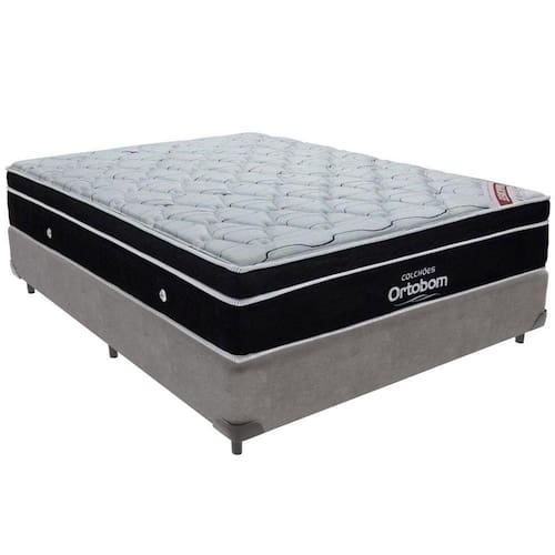 Cama Box Cinza E Colchão Elegant Molas Ensacadas Casal Ortobom