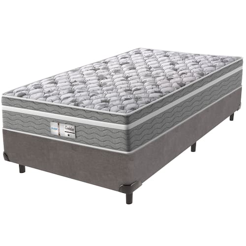 Cama Box Cinza e Colchão Evolution Molas Ensacadas Solteiro Probel