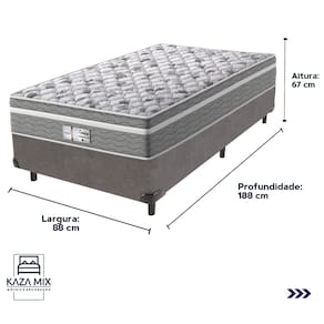 O conforto que sua casa precisa e a qualidade que você merece está na Kazamix!O Colchão Evolution é a escolha ideal para quem busca conforto, suporte e qualidade em cada noite de sono. Com Molas Ensacadas que oferecem um suporte individualizado, e um Pillow Euro que proporciona uma camada extra de suavidade, esse colchão transforma seu descanso em uma experiência de luxo.Com espuma D28 de alta densidade, o Evolution garante firmeza e conforto duradouros. Seu acabamento em poliéster diamante e bordado em matelassê trazem um toque de elegância e sofisticação ao seu ambiente.Além disso, o colchão é tratado com propriedades antiácaro e antialérgico, garantindo um sono mais saudável e seguro.Invista no seu bem-estar com o colchão Evolution, e experimente a combinação perfeita de conforto e durabilidade!Modelo: EvolutionMarca: ProbelTamanho: SolteiroDimensões: 88x188X32 (Largura x Comprimento x Altura)Conforto: IntermediárioSistema: Molas EnsacadasPillow: Euro PillowPeso Máximo recomendado: 110 kg (Por pessoa)Proteções: Antiácaro, antialérgico, antifungo, antimofoGarantia: 1 ano pelo FabricanteO conforto que sua casa precisa e a qualidade que você merece está na Kazamix!Eleve o conforto e a sofisticação do seu quarto com a Cama Box!Produzida em madeira de reflorestamento reforçada, a Cama Box combina qualidade, durabilidade e um design elegante, que confere leveza e modernidade ao seu dormitório. Sua estrutura robusta suporta até 150 kg por pessoa, garantindo a sustentação perfeita para o colchão e prolongando a vida útil do produto.Com uma altura ergonômica, ela oferece maior conforto ao deitar e levantar, enquanto o acabamento de alta qualidade se adapta a qualquer estilo de decoração, unindo praticidade e estilo.Não perca tempo! Adquira agora mesmo a sua Cama Box e transforme seu dormitório com conforto e elegância.Marca: KazaMixModelo: BoxCor do Box: CinzaTamanho: SolteiroDimensões: 88X188X35 (Largura x Comprimento x Altura) Estrutura: MadeiraPeso máximo recomendado: 150 kg (Por Pessoa)Altura do Box: 25 cm Altura dos Pés: 10 cm Altura total: 35 cm Garantia: 03 mesesSelo Ecologicamente CorretoAtenção: Antes de finalizar sua compra, certifique-se de que as dimensões do produto sejam adequadas para serem transportadas pelos elevadores, portas, escadas e corredores de sua residência. Ressaltamos que não nos responsabilizamos pelo transporte do produto por meios específicos, como escadas, guinchos ou içamentos.