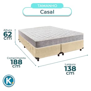 Conjunto Casal Colchão D23 + Cama BoxColchão solteiro Casal com 14cm de altura, compacto e funcionalTecido em poliéster resistente, com toque agradável e fácil de cuidarSuporte de até 60kg, ideal para crianças, adolescentes ou uso leveBase Box Casal Elite Bipartido em Veludo – Elegância com Facilidade no TransporteModelo bipartido: ideal para acessos estreitos, escadas e elevadoresEstrutura reforçada com suporte de até 150kg, garantindo durabilidade e segurançaFicha Técnica Colchão:Modelo: D23Marca: InducolTamanho: CasalTecido: PoliésterLargura: 138cmComprimento: 188cmAltura: 14cmSuporte de Peso: 60KgGarantia: 3 MesesFicha Técnica Cama Box:Modelo: Elite BiPartidoMarca: NatureTamanho: CasalTecido: VeludoLargura: 138cmComprimento: 188cmAltura: 35cmAltura dos Pés: 13cmMaterial dos Pés: MadeiraSuporte de Peso: 150KgPeso: 27KgGarantia: 3 MesesAtenção:Antes da compra certifique-se de que o produto passa por elevadores, portas e corredores.As transportadoras não realizam entregas por escadas ou içamentos.Caso o item não caiba no elevador, a entrega será considerada concluída no térreo do prédio.A cor e tonalidade do produto pode variar de acordo com o dispositivo que o usuário está acessando.