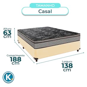 Conjunto Casal Colchão Conforto + Cama BoxColchão Casal com 17cm de altura, ideal para uso diário e confortávelRevestimento em poliéster resistente com toque suave e fácil de limparSuporte de até 80kg, indicado para crianças, adolescentes e adultos levesBase box casal ideal para otimizar o espaço do quarto com praticidadeRevestimento em Material Sintético: fácil de limpar e com visual modernoEstrutura firme e resistente com suporte para até 150kgFicha Técnica Colchão:Modelo: ConfortoMarca: ParopasTamanho: CasalTecido: PoliésterLargura: 138cmComprimento: 188cmAltura: 25cmSuporte de Peso: 80KgGarantia: 3 MesesFicha Técnica Cama Box:Modelo: UniversalMarca: NatureTamanho: CasalTecido: Material Sintético Largura: 138cmComprimento: 188cmAltura: 25cmAltura dos Pés: 13cmMaterial dos Pés: MadeiraSuporte de Peso: 150KgPeso: 27KgGarantia: 3 MesesAtenção:Antes da compra certifique-se de que o produto passa por elevadores, portas e corredores.As transportadoras não realizam entregas por escadas ou içamentos.Caso o item não caiba no elevador, a entrega será considerada concluída no térreo do prédio.A cor e tonalidade do produto pode variar de acordo com o dispositivo que o usuário está acessando.