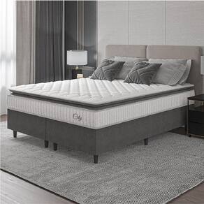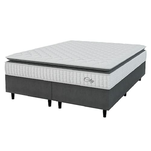 Cama Box Colchão Casal King Molas Ensacadas City Pillow Top 193x203x61cm Cinza Branco