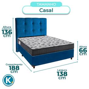 Cama Box + Colchão Casal Ortobom D33 Iso100 + Cabeceira Estofada - Azul