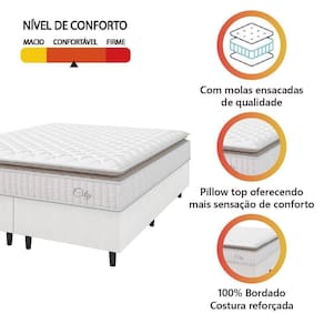 MODELO: Cama Box Colchão Casal Queen Molas Ensacadas City Pillow Top 158x188x61cm Linho