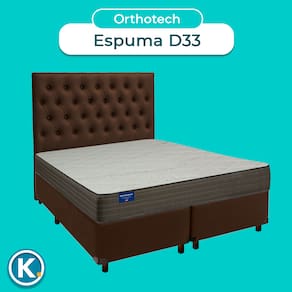 Cama Box + Colchão Queen D33 Orthotech Inducol + Cabeceira Estofada - Marrom