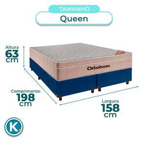 Conjunto Queen Colchão Airtech + Cama BoxColchão Ortobom Queen com 25cm de altura, ideal para conforto no uso diárioTecido em poliéster que garante toque suave e boa ventilaçãoSuporte de até 120kg, ideal para diferentes biotipos com firmeza balanceadaBase Box Queen Universal em VeludoMedidas Queen: 158x198cm, ideal para colchões maiores e mais espaçososEstrutura reforçada com suporte de até 150kg, garantindo segurança e durabilidadeFicha Técnica Colchão:Modelo: AirtechMarca: OrtobomTamanho: QueenTecido: PoliésterLargura: 158cmComprimento: 198cmAltura: 25cmSuporte de Peso: 120KgGarantia: 3 MesesFicha Técnica Cama Box:Modelo: UniversalMarca: NatureTamanho: QueenTecido: VeludoLargura: 158cmComprimento: 198cmAltura: 25cmAltura dos Pés: 13cmMaterial dos Pés: MadeiraSuporte de Peso: 150KgPeso: 30KgGarantia: 3 MesesAtenção:Antes da compra certifique-se de que o produto passa por elevadores, portas e corredores.As transportadoras não realizam entregas por escadas ou içamentos.Caso o item não caiba no elevador, a entrega será considerada concluída no térreo do prédio.A cor e tonalidade do produto pode variar de acordo com o dispositivo que o usuário está acessando.
