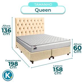 Conjunto Queen Colchão Hanover + Cama BoxColchão Queen com 22cm de altura, ideal para conforto e praticidade no dia a diaRevestimento em Jacquard e Poliéster, unindo sofisticação e resistênciaSuporte de até 130kg, oferecendo firmeza e segurança para diferentes perfisBase Box Queen Universal em VeludoMedidas Queen: 158x198cm, ideal para colchões maiores e mais espaçososEstrutura reforçada com suporte de até 150kg, garantindo segurança e durabilidadeFicha Técnica Colchão:Modelo: HanoverMarca: InducolTamanho: QueenTecido: Jacquard/PoliésterLargura: 158cmComprimento: 198cmAltura: 22cmSuporte de Peso: 130KgGarantia: 3 MesesFicha Técnica Cama Box:Modelo: UniversalMarca: NatureTamanho: QueenTecido: VeludoLargura: 158cmComprimento: 198cmAltura: 25cmAltura dos Pés: 13cmMaterial dos Pés: MadeiraSuporte de Peso: 150KgPeso: 30KgGarantia: 3 MesesAtenção:Antes da compra certifique-se de que o produto passa por elevadores, portas e corredores.As transportadoras não realizam entregas por escadas ou içamentos.Caso o item não caiba no elevador, a entrega será considerada concluída no térreo do prédio.A cor e tonalidade do produto pode variar de acordo com o dispositivo que o usuário está acessando.