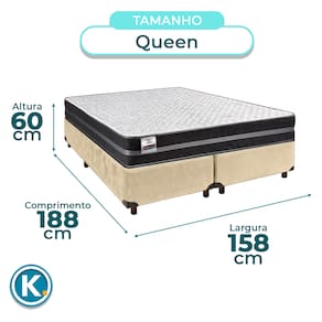Conjunto Queen Colchão Bogota + Cama BoxColchão Queen com 22cm de altura, ideal para conforto e praticidadeRevestimento em Jacquard e Poliéster: beleza, resistência e toque suaveSuporte de até 150kg, ideal para diferentes biotipos com ótima firmezaBase Box Queen Universal em VeludoMedidas Queen: 158x198cm, ideal para colchões maiores e mais espaçososEstrutura reforçada com suporte de até 150kg, garantindo segurança e durabilidadeFicha Técnica Colchão:Modelo: BogotaMarca: InducolTamanho: QueenTecido: Jacquard/PoliésterLargura: 158cmComprimento: 198cmAltura: 22cmSuporte de Peso: 150KgGarantia: 3 MesesFicha Técnica Cama Box:Modelo: UniversalMarca: NatureTamanho: QueenTecido: VeludoLargura: 158cmComprimento: 198cmAltura: 25cmAltura dos Pés: 13cmMaterial dos Pés: MadeiraSuporte de Peso: 150KgPeso: 30KgGarantia: 3 MesesAtenção:Antes da compra certifique-se de que o produto passa por elevadores, portas e corredores.As transportadoras não realizam entregas por escadas ou içamentos.Caso o item não caiba no elevador, a entrega será considerada concluída no térreo do prédio.A cor e tonalidade do produto pode variar de acordo com o dispositivo que o usuário está acessando.