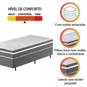 Cama Box Colchão Solteiro Molas Ensacadas Euro In Up 88x188x64cm Cinza/branco Probel Cinza / Branco