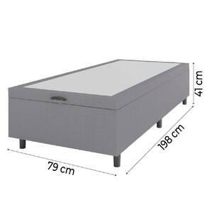 MEDIDAS:: [ A ] = 41 cm / 35 cm (sem pés) [ L ] =79 cm [ P ] = 198 cm | PESO:: 42kg | PÉS:: 6 | MODELO:: Box com báu solteiro | MARCA:: Prince | COR:: Cinza | TECIDO:: Material Sintético | GARANTIA:: 3 meses | OBS:: Colchão e objetos decorativos não estão inclusos | ITENS INCLUSOS:: 1 BOX | TAMANHO: Solteiro Cor: Cinza