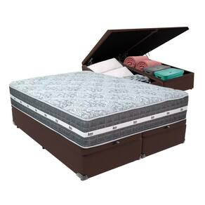 Base Box com Baú: Marca: KazaMix; Cor do Baú: Bege; Material dos pés: Madeira; Estrutura: Madeira; Abertura: Pistão a gás; Peso máximo recomendado: até 150kg de cada lado; Altura do Baú: 32cm; Altura dos pés: 5cm; Altura total: 37cm; Garantia: 03 meses; Selo Ecologicamente Correto.