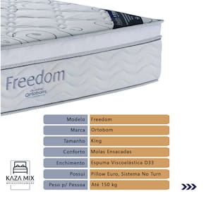 Qualidade Ortobom: O Freedom é produzido pela renomada marca Ortobom, conhecida por sua expertise em tecnologia do sono. Com anos de experiência no mercado, a Ortobom é reconhecida por oferecer produtos inovadores e de alta qualidade, que atendem às necessidades dos clientes mais exigentes.