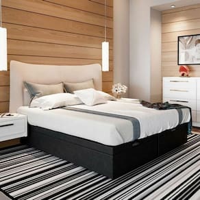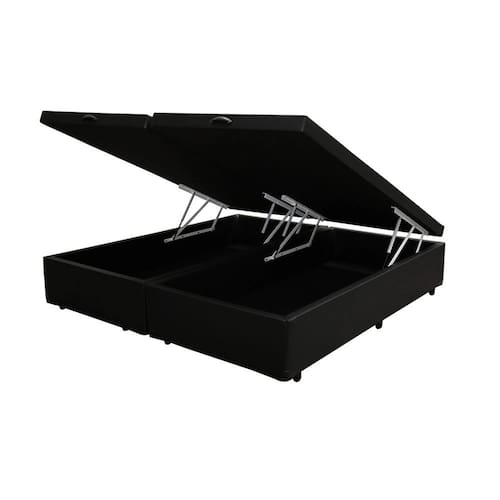 Estrutura Interna: Estrutura em madeira 100% de Reflorestamento Tecido: Sintetico Cor: Preta Necessita Montagem: Não Ambiente: Quarto Altura: 37 cm Largura: 193 cm Largura cada Box: 96,5 cm Profundidade: 203 cm Possui Pés: Sim Altura dos Pés: 6 cm Altura Interna: 28 cm Baú: Pistão a Gás Contém 02 puxadores, para maior facilidade na abertura Contém 01 arco na parte de trás para o colchão não escorregar
