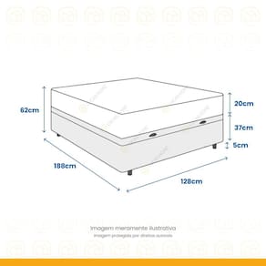 - Dimensões do produto (largura x comprimento x altura) Viúva: 128x188x42cm;