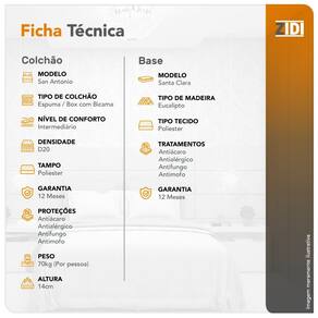 O Colchão San Antonio possui espuma D20 produzida com um ótimo padrão de qualidade, passando por diversos controles de qualidade proporcionando assim o San Antonio uma excelente opção para nossos clientes em relação ao custo-benefício deste produto.