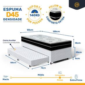 - Tipo de colchão Auxiliar: Espuma D28;