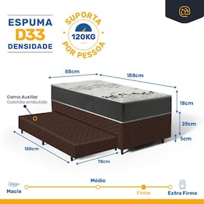 - Tipo de colchão Auxiliar: Espuma D28;
