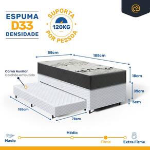 - Tipo de colchão Auxiliar: Espuma D28;