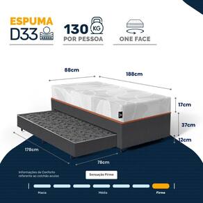 - Dimensões do produto (larg. x comp. x alt.) Solteiro: 88x188x49cm;