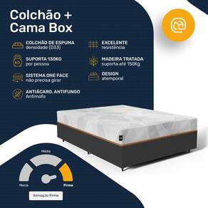 Complementando este colchão, a base box é feita de madeira tratada e revestida, suportando até 150 Kg por pessoa. Ela não só eleva seu colchão a uma altura ideal para fácil acesso, mas também estabiliza seu sono com uma fundação sólida e confiável. Esta combinação não apenas maximiza seu conforto, mas também a funcionalidade do seu espaço de descanso.